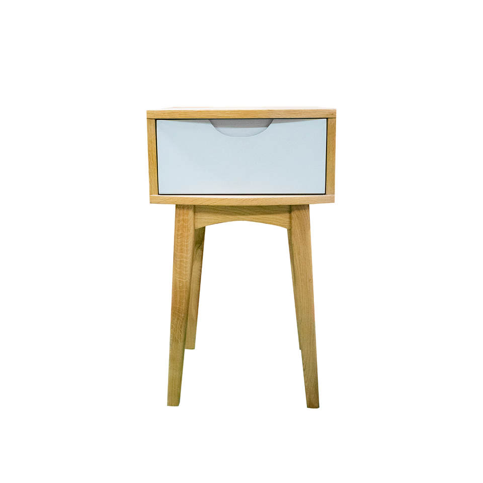 โต๊ะข้างเตียงไม้สนสไตล์มินิมอลแบบดั้งเดิม 1 ลิ้นชัก ผลิตจากไม้ยางพารา เฟอร์นิเจอร์ห้องนอน ผลิตในเวียดนาม แบรนด์ OEM