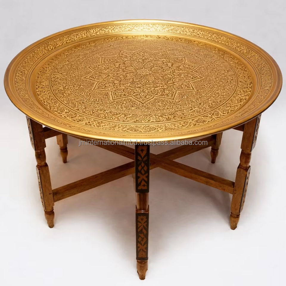 โต๊ะถาดพับได้ทองเหลืองแบบโมร็อกโกโบราณสำหรับเฟอร์นิเจอร์ห้องนั่งเล่น