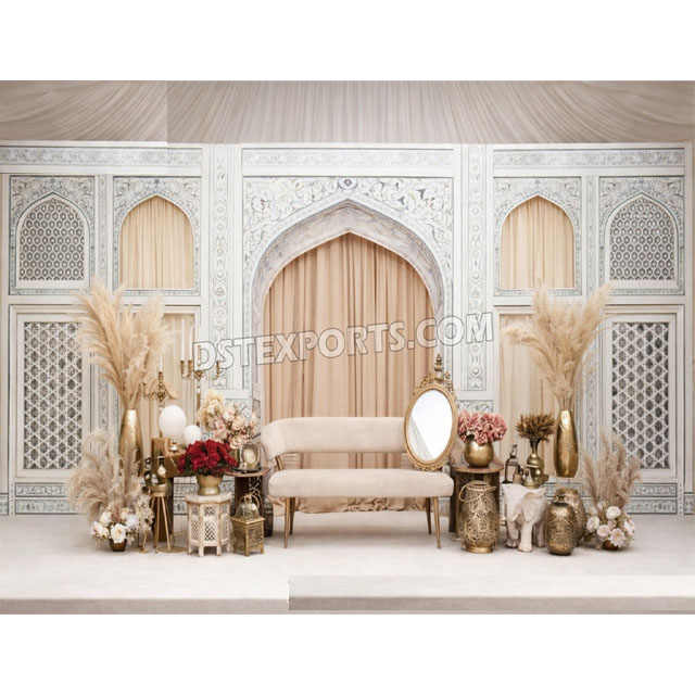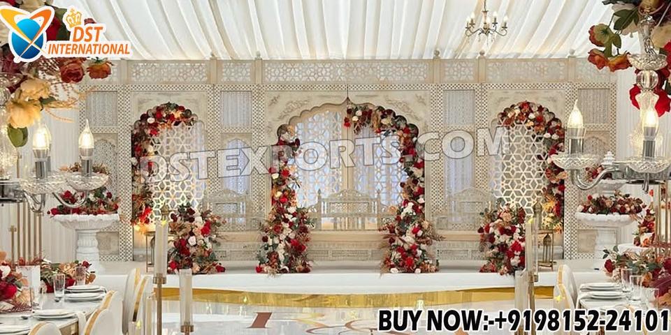 Traditional Mughal Arch Wooden Frame Stage Backdrop Buy Customized White Finish Back Panel For Stage At Affordable Prices London