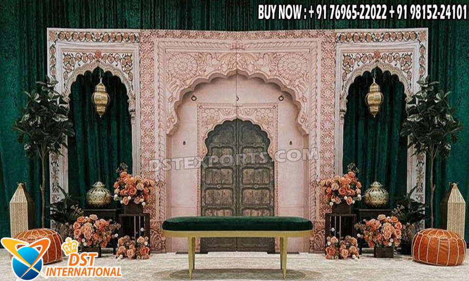 Traditional Mughal Arch Wooden Frame Stage Backdrop