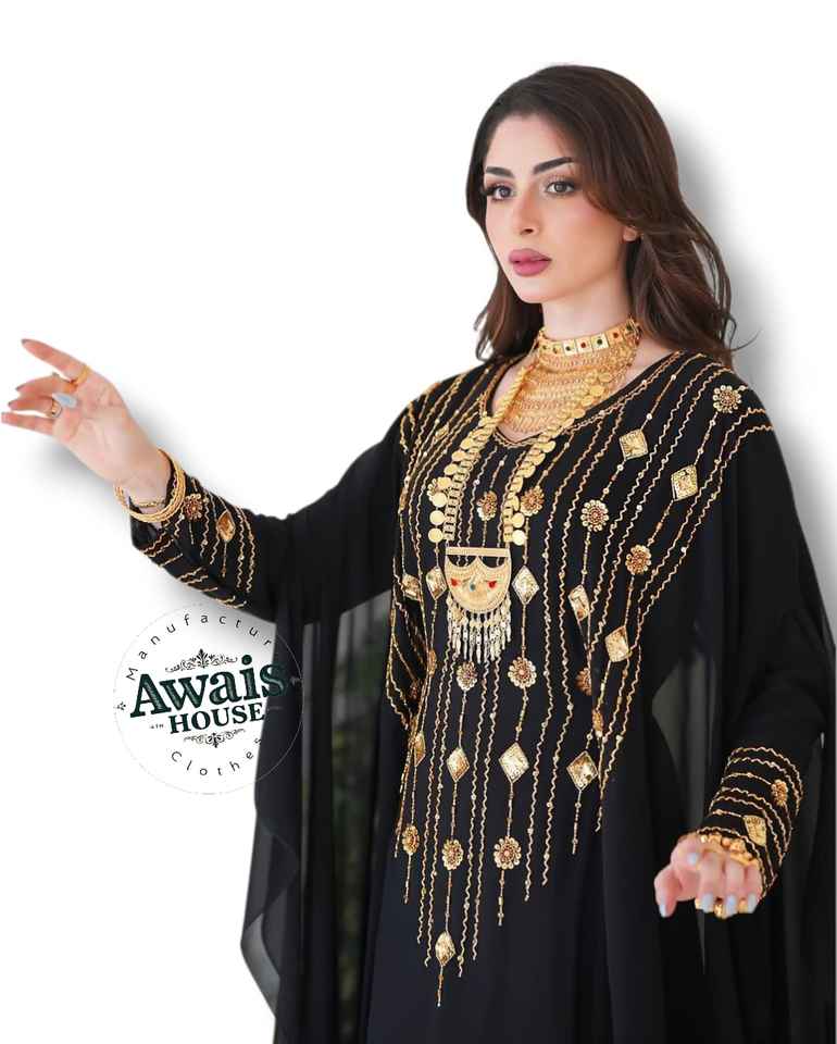 ชุดอาบายะห์แบบดั้งเดิมของชาวมุสลิม ผ้าชีฟองเรียบง่าย ปักลายแบบคาฟตัน อิรัก ประดับลูกปัด ทรงเอไลน์ยาวถึงพื้น สำหรับผู้หญิง