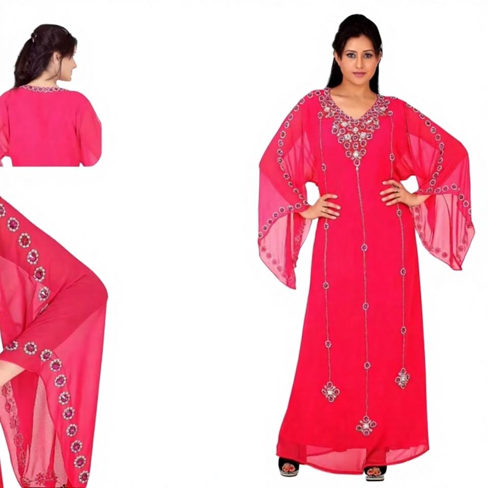 ชุดเพื่อนเจ้าสาวมุสลิมแบบดั้งเดิม ชุดคาฟตันอิสลาม ผ้าจอร์เจตต์ตุรกีเนื้อผ้าหรูหรา น้ำหนักเบา ระบายอากาศได้ดี เหมาะสำหรับฤดูใบไม้ผลิ สามารถสั่งตัดได้