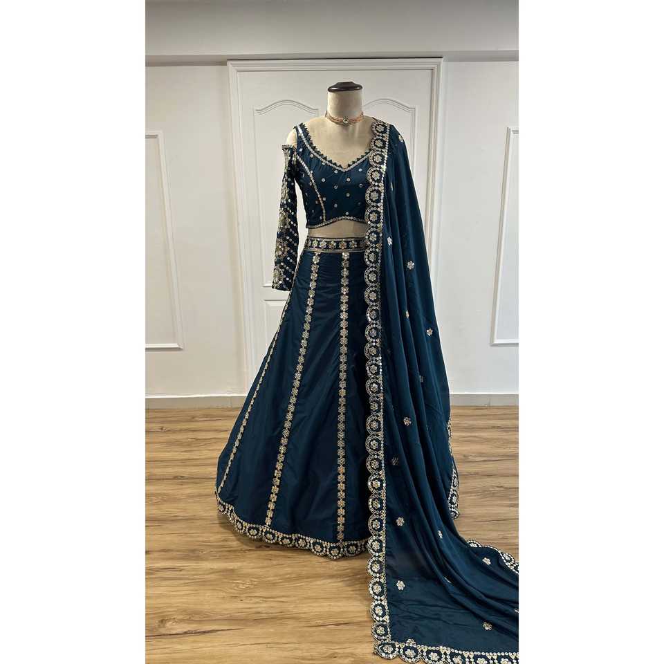 ชุดเลเฮนกาโชลีแบบดั้งเดิมของชาวมุสลิม พร้อมงานปักดิ้นและลายฉลุ สำหรับงานปาร์ตี้