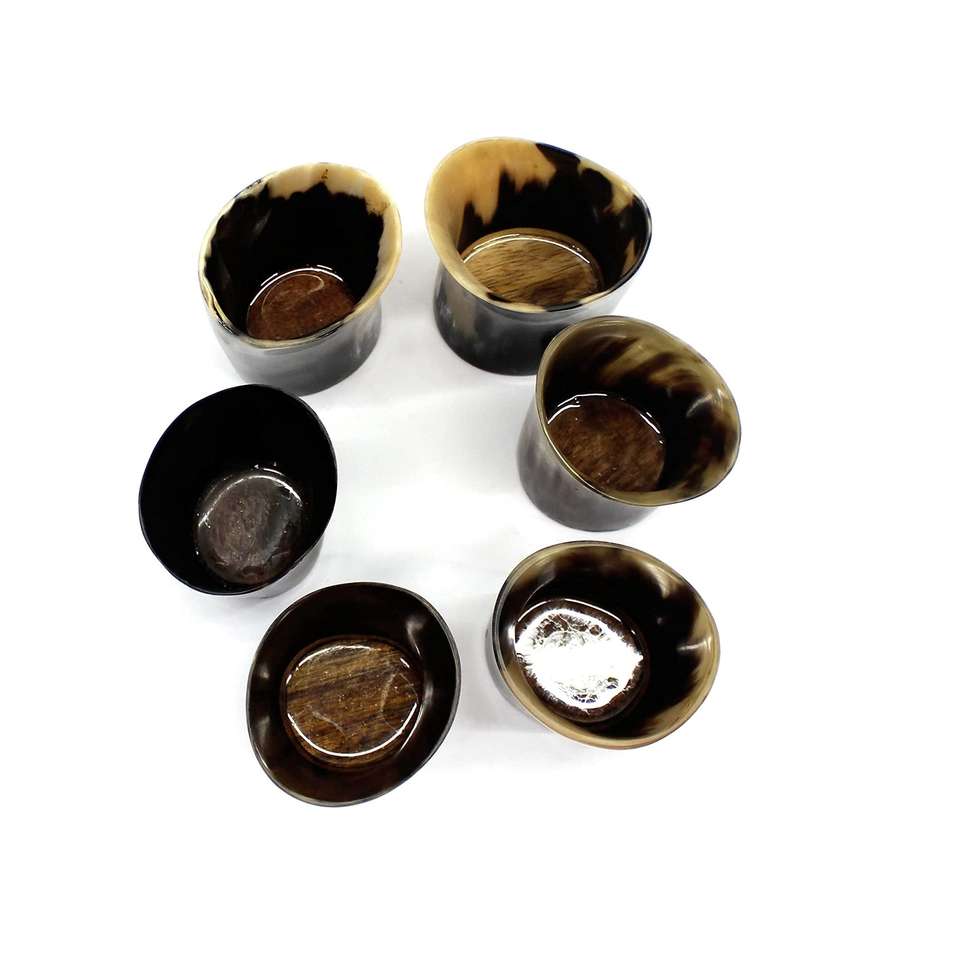 แก้วช็อตทำจากเขาควายธรรมชาติคุณภาพสูง ขัดเงาด้วยมือ เป็นมิตรกับสิ่งแวดล้อม ดีไซน์สวยงาม เหมาะสำหรับใช้ในพิธีต่างๆ