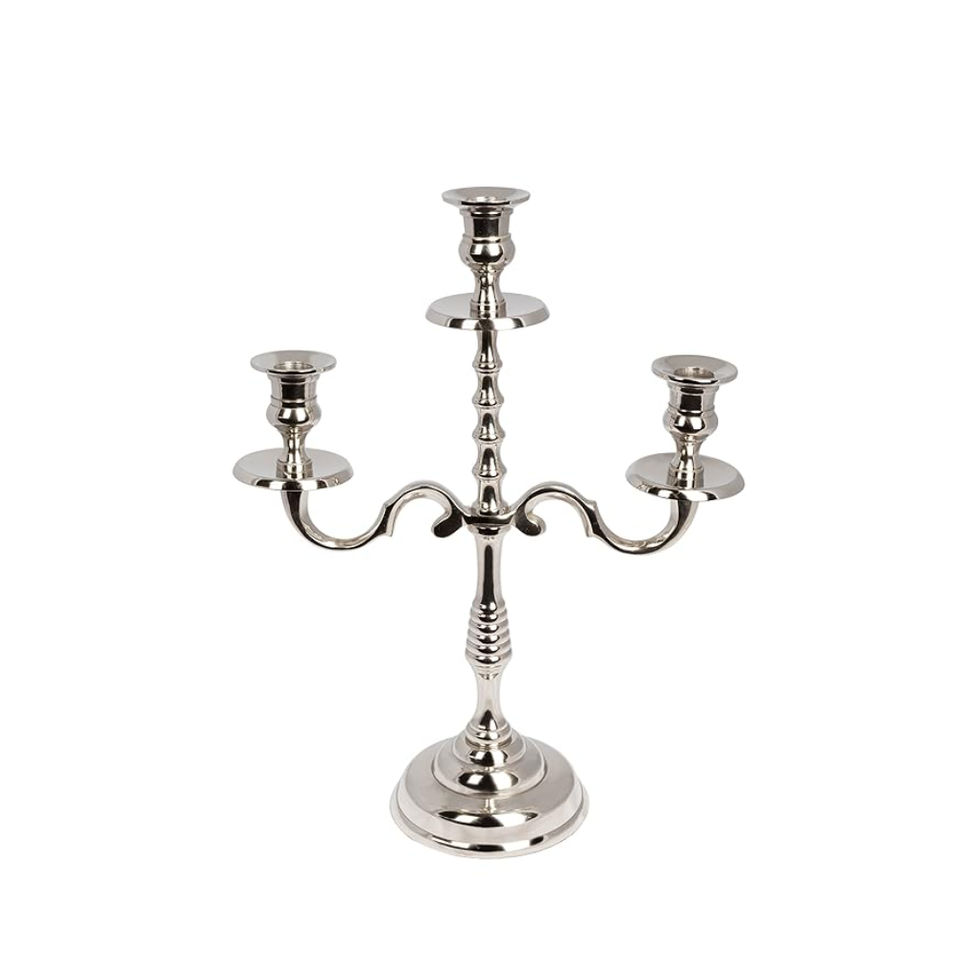 เชิงเทียนโลหะชุบนิกเกิลแบบดั้งเดิมที่วางเทียนตกแต่งสีเงินหรูหราสำหรับงานแต่งงานและการตกแต่งบ้าน