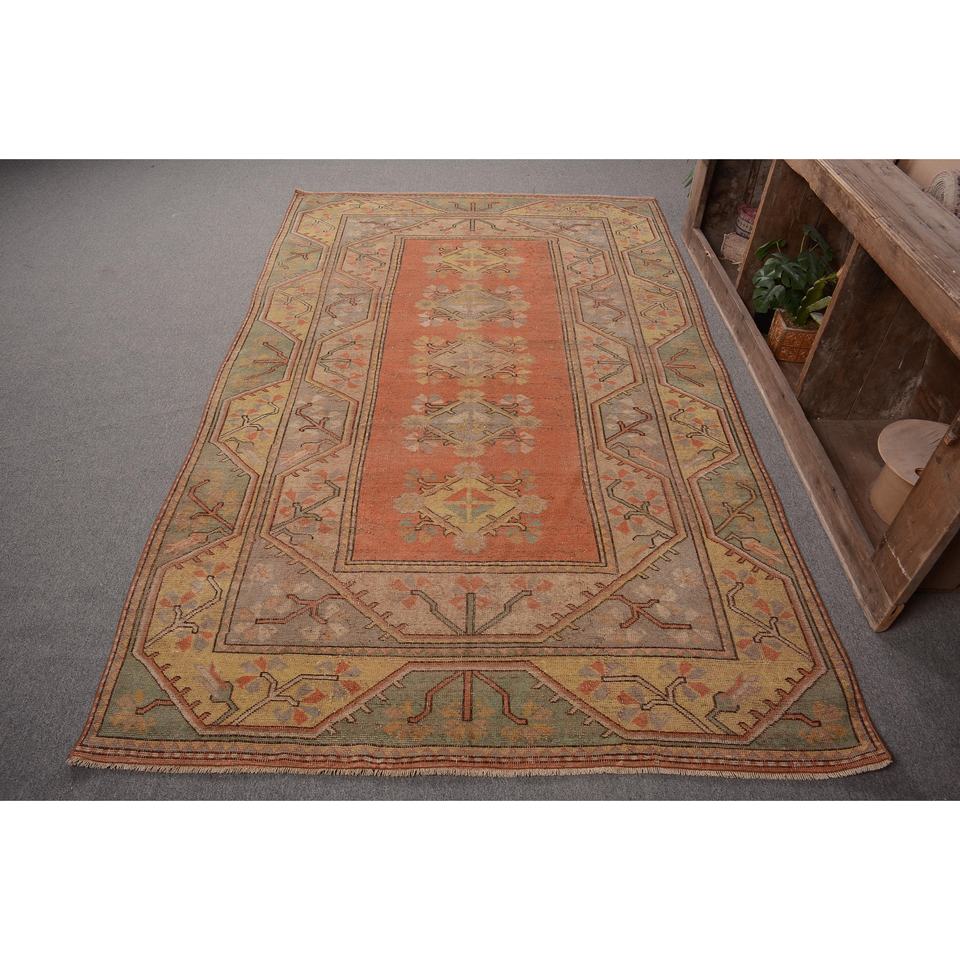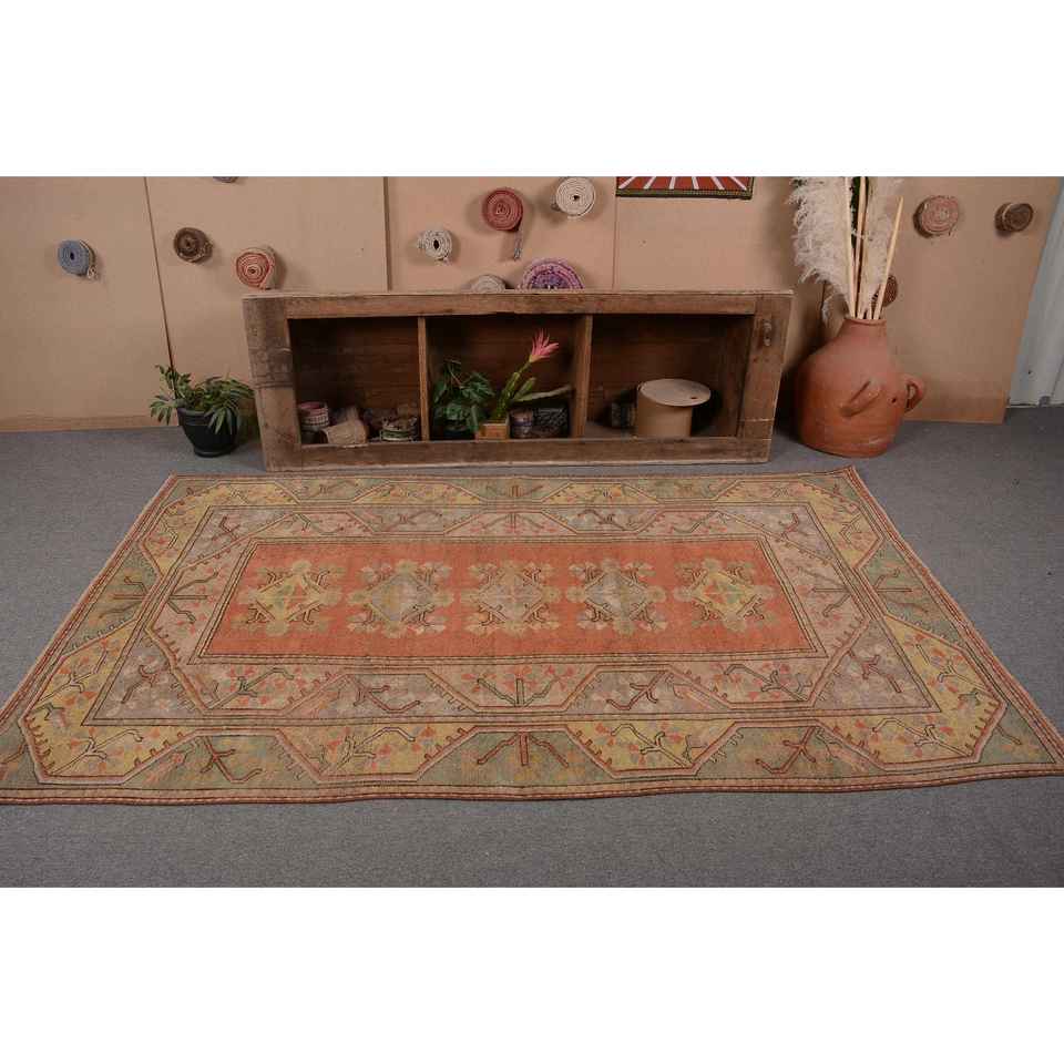 พรมขนแกะสีเหลืองส้มแบบดั้งเดิม4.8x8ฟุตวินเทจแบบตุรกีพรมสานแบนเรียบคลาสสิคห้องนั่งเล่นการเย็บปะติดปะต่อกันด้วยยาง