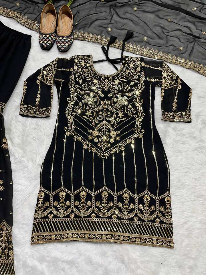 ชุดคุर्ตา ชารารา ปาลาซโซ พร้อมผ้าคลุมไหล่ แบบดั้งเดิมสไตล์บอลลีวูด สำหรับงานปาร์ตี้ ผ้าจอร์เจตต์เทียมเนื้อหนา ราคาสุดคุ้ม
