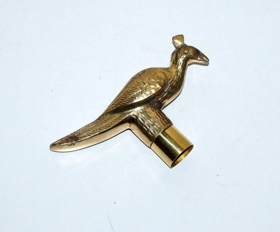 ไม้เท้าดีไซน์นกยูงแบบดั้งเดิม ของขวัญสไตล์วินเทจย้อนยุค ด้ามจับทองเหลืองขัดเงา
