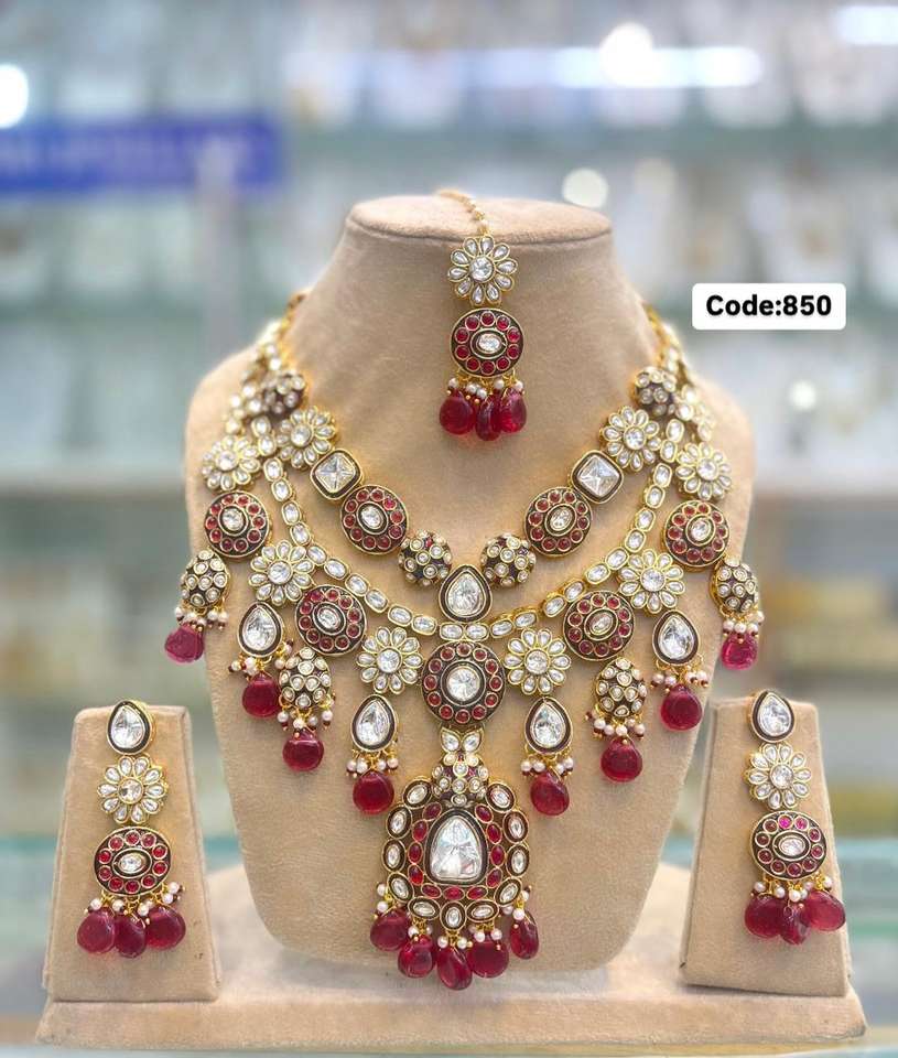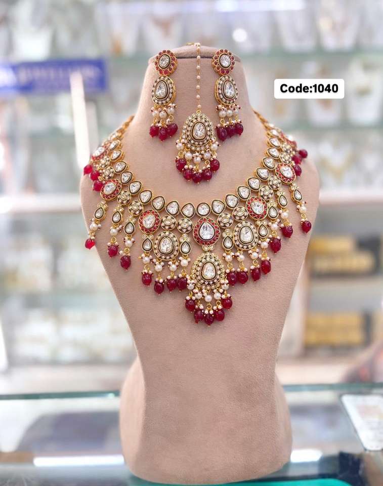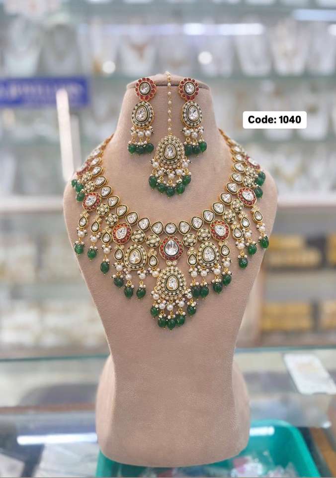 ชุดเครื่องประดับเจ้าสาวโพลิแบบดั้งเดิมสร้อยคอทำมือพร้อมต่างหูที่เข้ากันในราคาที่ดีที่สุดจากอินเดีย