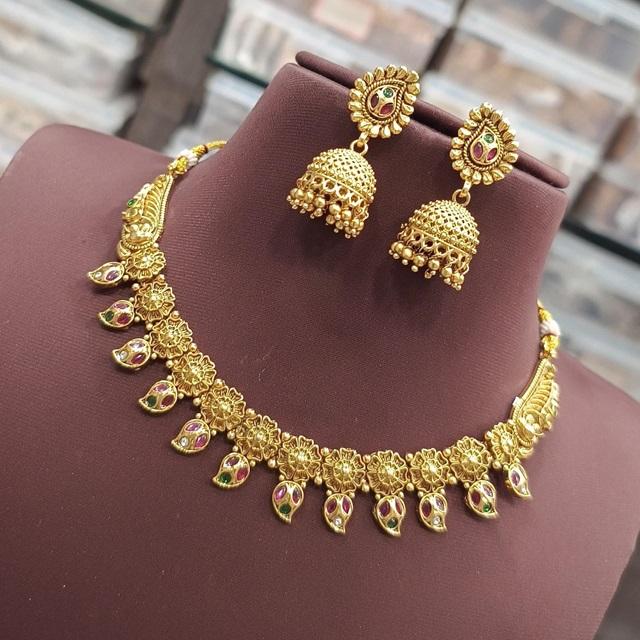 Traditional Premium Polish Premium Quality Exclusive Unique Design Gold Tone Necklace Set With Earrings for Women for Wedding