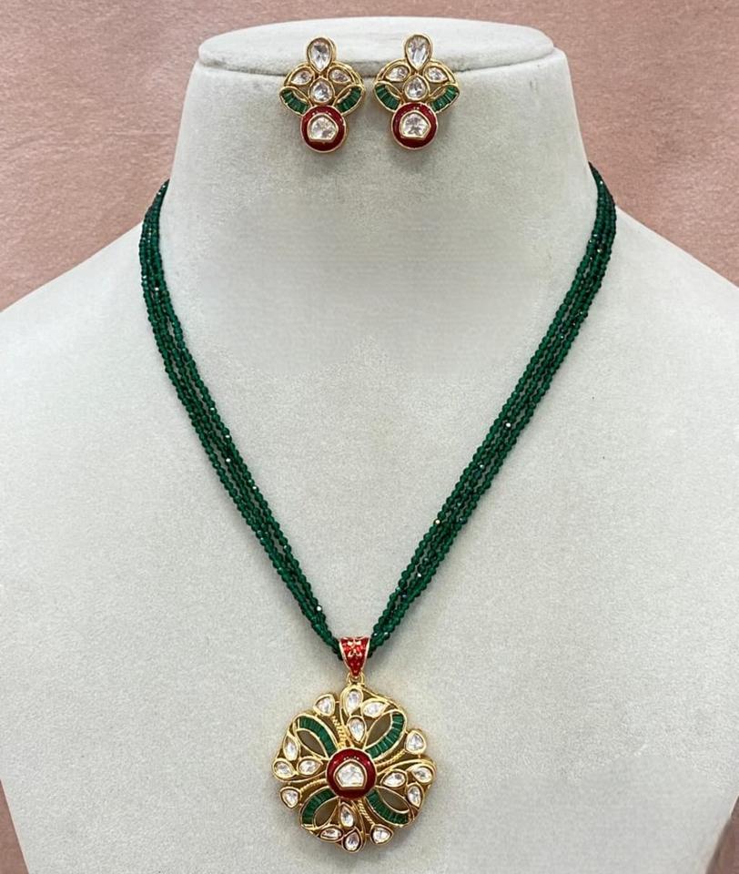 ชุดจี้ห้อยคอพร้อมต่างหูทองเหลืองคุณภาพพรีเมียมแบบดั้งเดิม ชุบทองคำแท้ ประดับด้วยคันดัน สำหรับผู้หญิง เครื่องประดับดีไซเนอร์สำหรับงานแต่งงานและงานปาร์ตี้