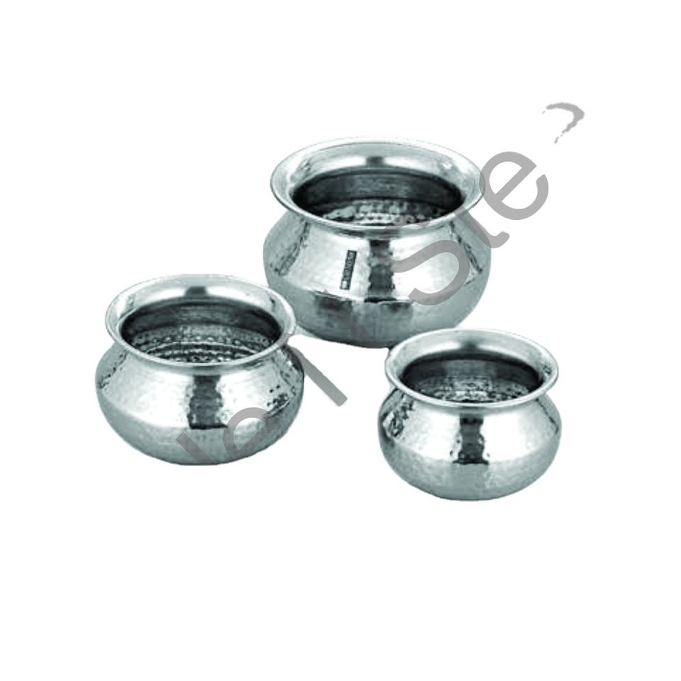 Punjabi handi ภาชนะใส่อาหารสแตนเลสสตีลทุบผนังเดี่ยวแบบดั้งเดิมอุปกรณ์ทำอาหารสีเงินดีไซน์คลาสสิกขายส่ง