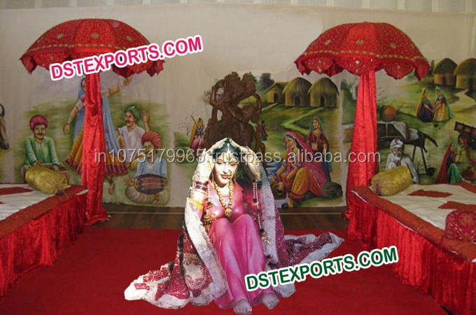 ประเพณีปัญจาบเลดี้ Phulkari รูปปั้นวัฒนธรรมปัญจาบ Mutiyar ไฟเบอร์รูปปั้นด้วย Phulkari ชีวิตขนาดไฟเบอร์รูปปั้นสำหรับงานแต่งงาน