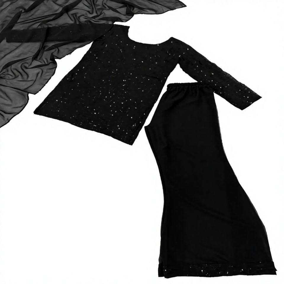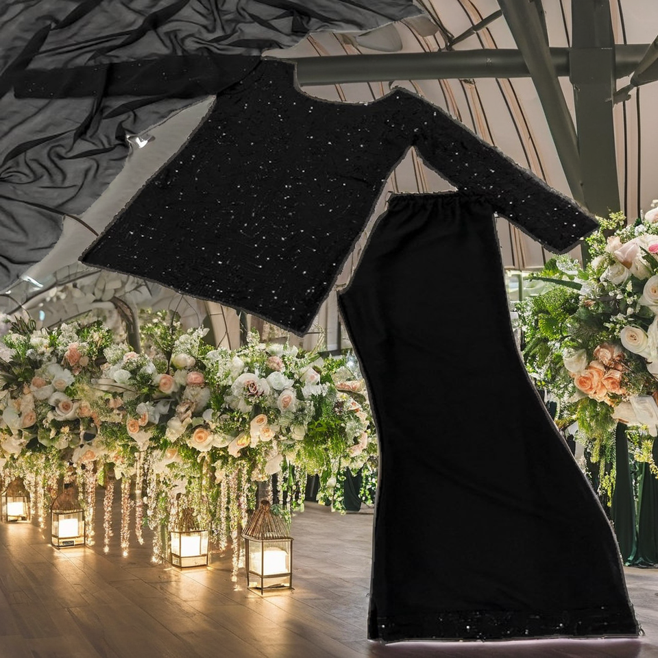 ชุดแต่งงานผ้าจอร์เจตต์ปักเลื่อมแบบดั้งเดิม พร้อมผ้าคลุมไหล่เข้าชุด ตัดเย็บสำเร็จพร้อมใส่ ดีไซน์เนอร์แพลโซ