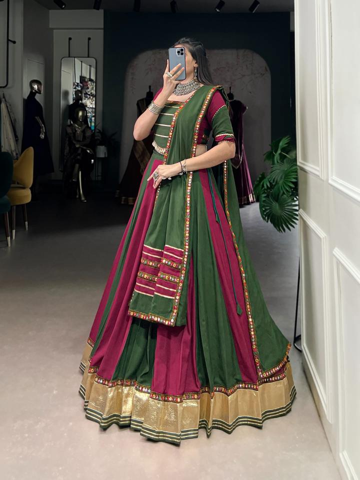เรยอนบริสุทธิ์แบบดั้งเดิมกับ gotta patti และกระจกทำงาน lehenga choli