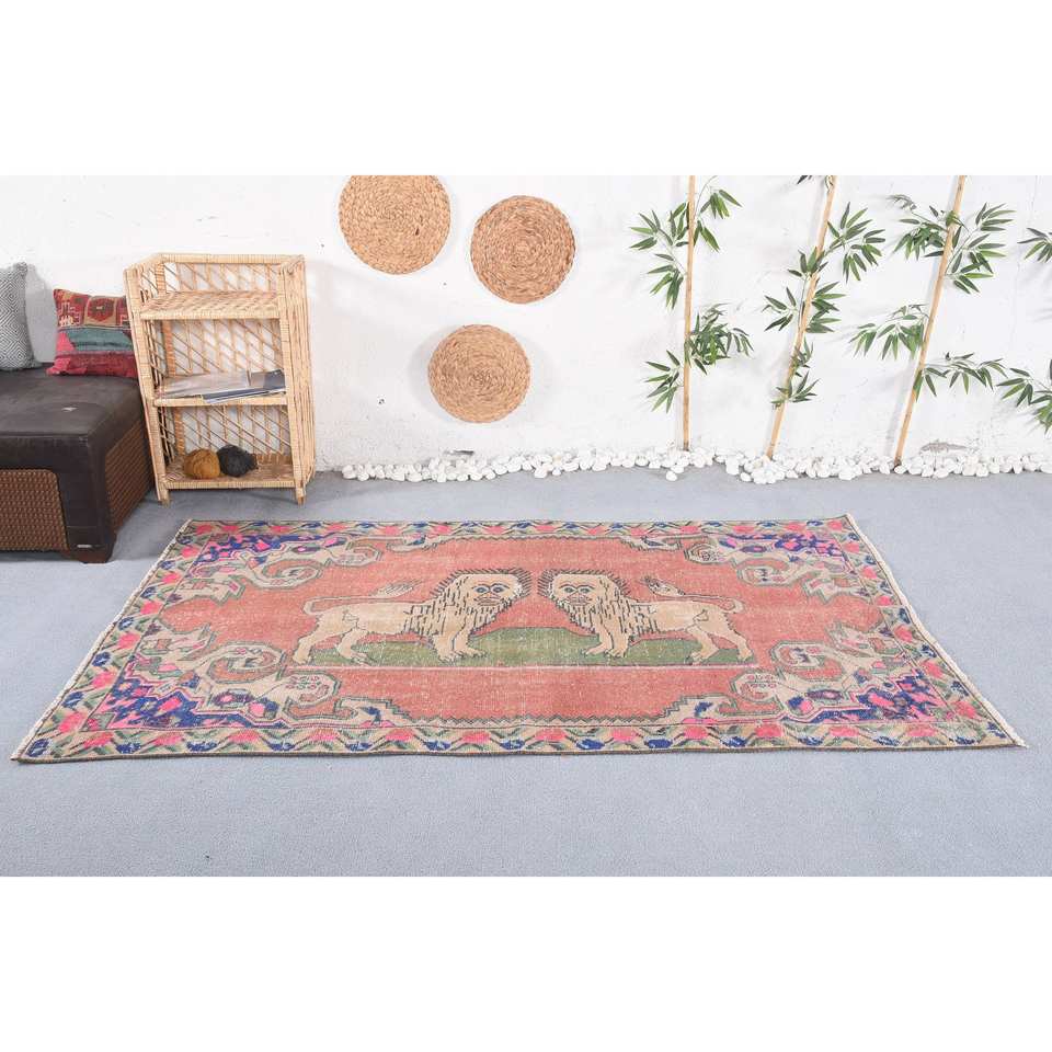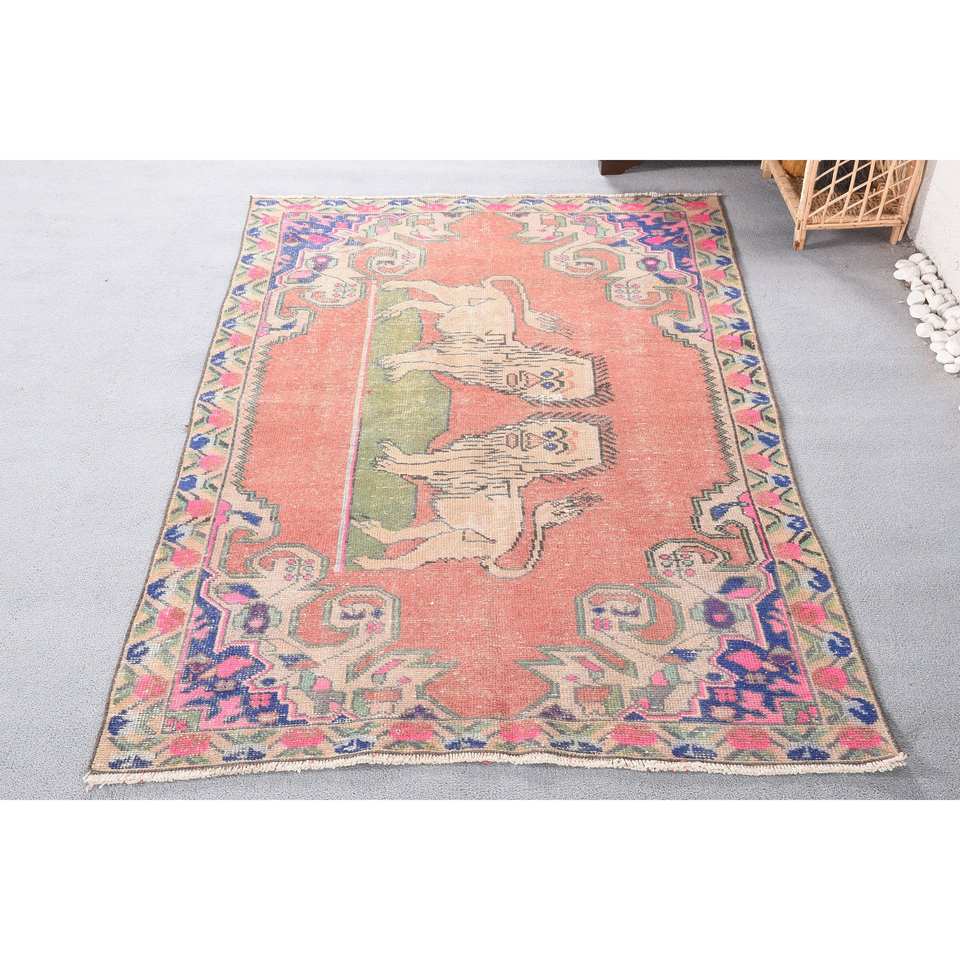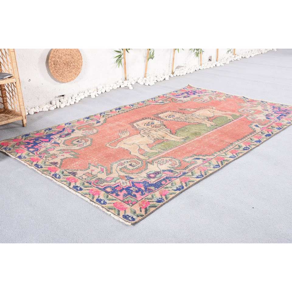 พรมตุรกีโบราณสีแดงสีน้ำเงินแบบดั้งเดิม4.4 x 7.1ft คลาสสิกพื้นที่ขนาดใหญ่ผ้าขนสัตว์การออกแบบการเย็บปะติดปะต่อกันด้วยยางสำหรับห้องโถงห้อง