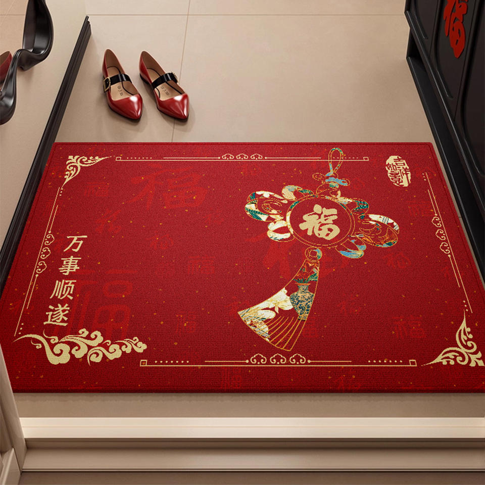 Traditional Red Doormat Rectangle Polyester Fiber Indoor Entrance New Year Fortune Prosperity High Quality 1PC