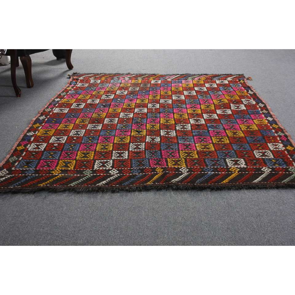 พรมถักขนสีแดงแบบดั้งเดิมขนาด5.2x6.8ฟุตพื้นที่ขนาดใหญ่แบบตุรกีสี่เหลี่ยมผืนผ้าพื้นที่เย็บปะติดพื้นผิวแบบแอบสแตรกสำหรับโถงทางเดินลาเท็กซ์10มม.