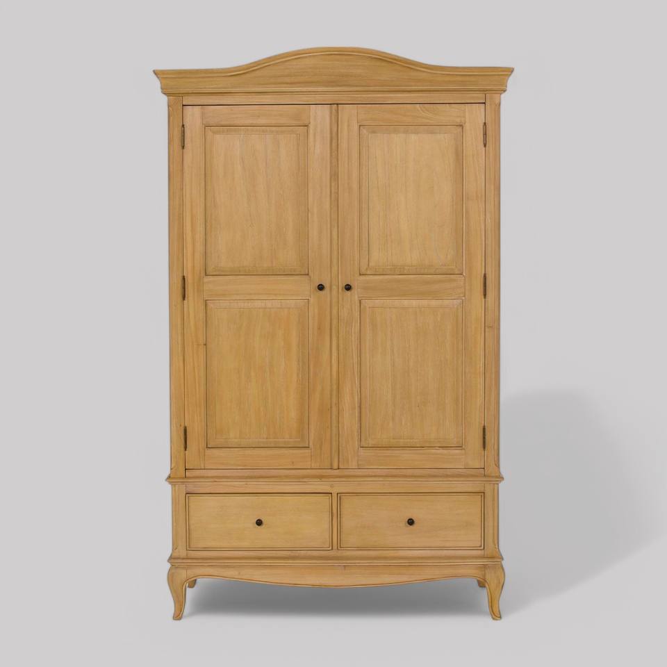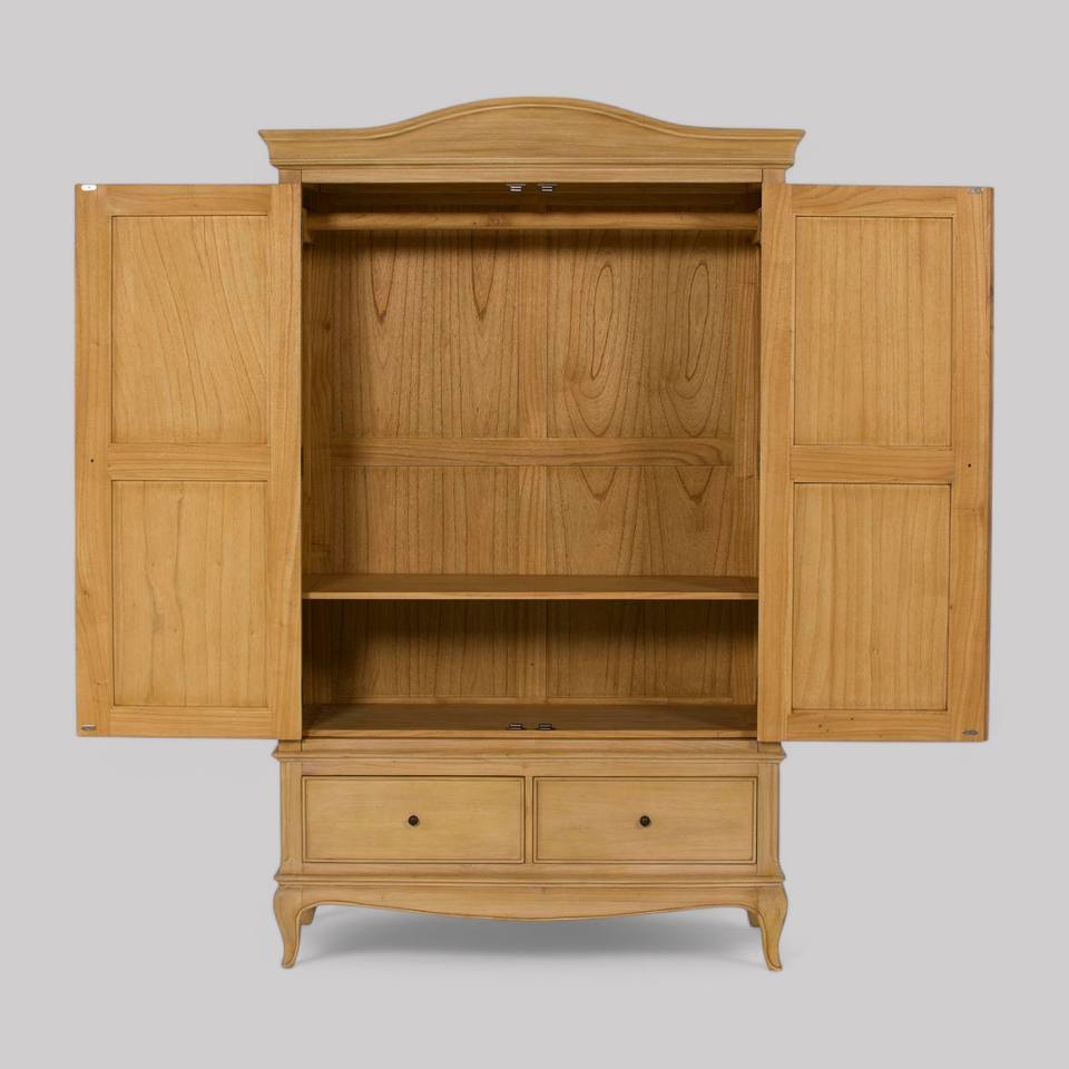 ตู้เสื้อผ้าไม้มินดีแบบฝรั่งเศส 2 บาน สไตล์เรียบง่าย งานแกะสลักด้วยมือ ตู้ไม้สีอ่อนสำหรับห้องนอน ห้องนั่งเล่น ตู้เก็บของ