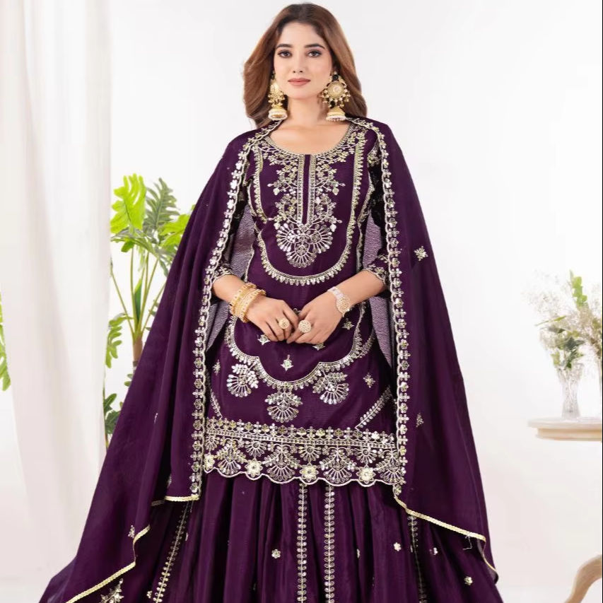 Salwar Kameez ชุดสูทผ้าไหมชาดาปักลายสำหรับงานแต่งงานแบบชาวปากีสถาน