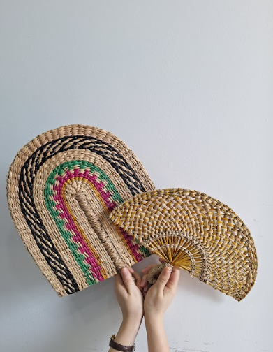 พัดลมมือหญ้าทะเลแบบดั้งเดิมที่สร้างขึ้นโดยช่างฝีมือเพื่อใช้ในฤดูร้อนและงานชนบท