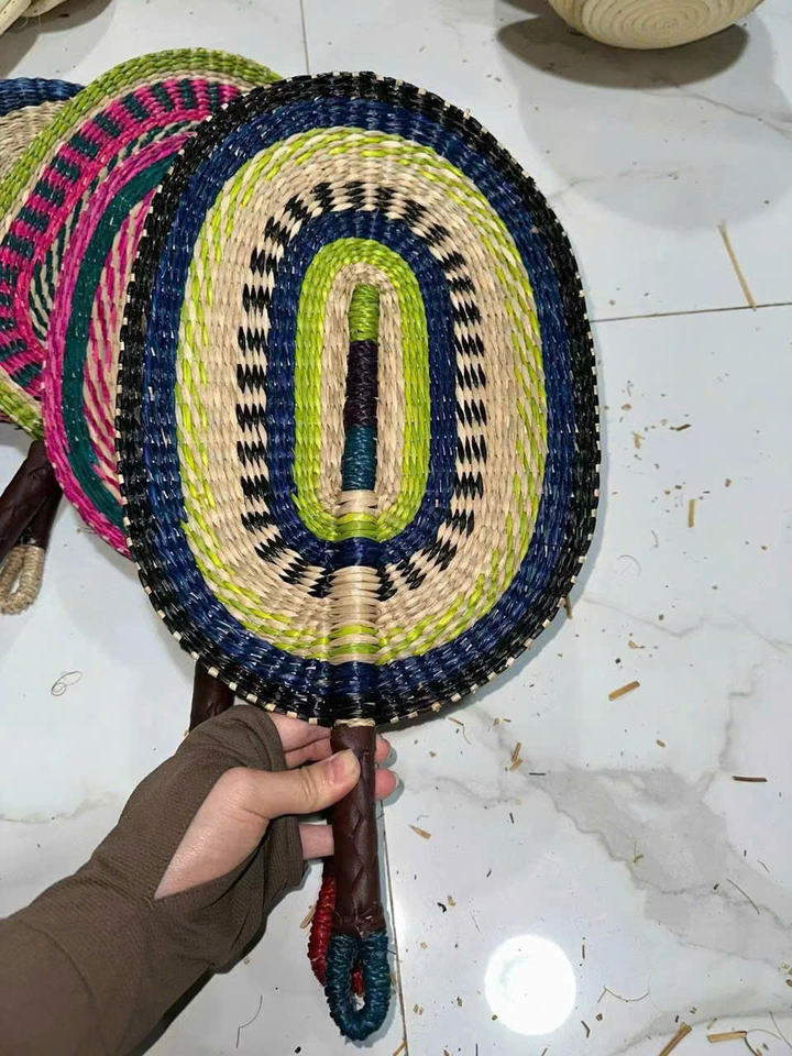 พัดลมมือถือหญ้าทะเลแบบดั้งเดิม-น้ำหนักเบามีสไตล์และเหมาะสำหรับตกแต่งโบฮีเมียนและชายหาด