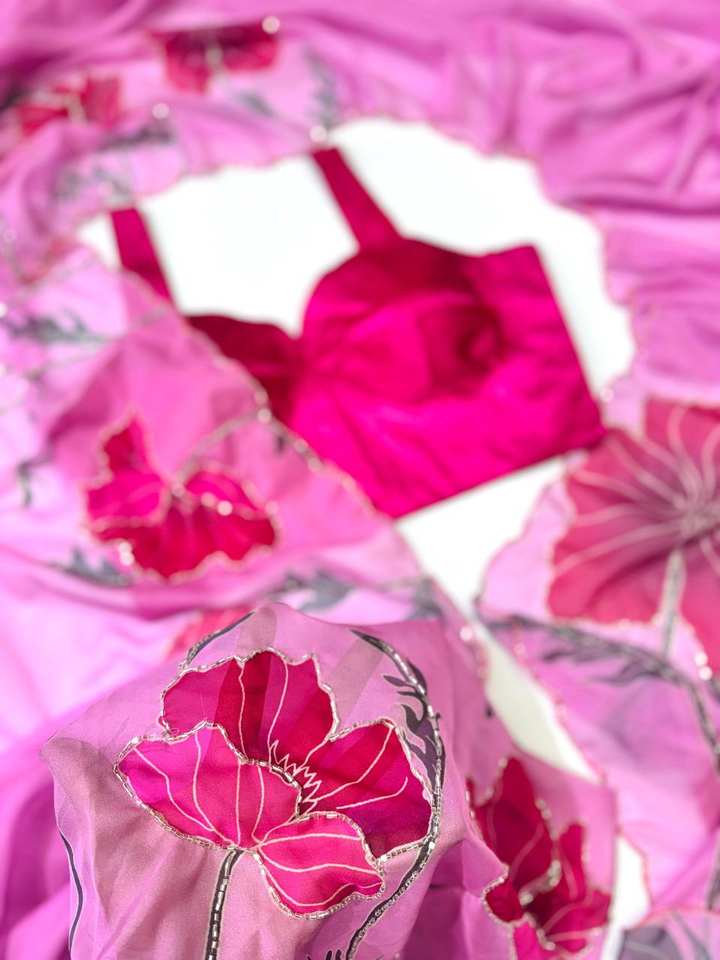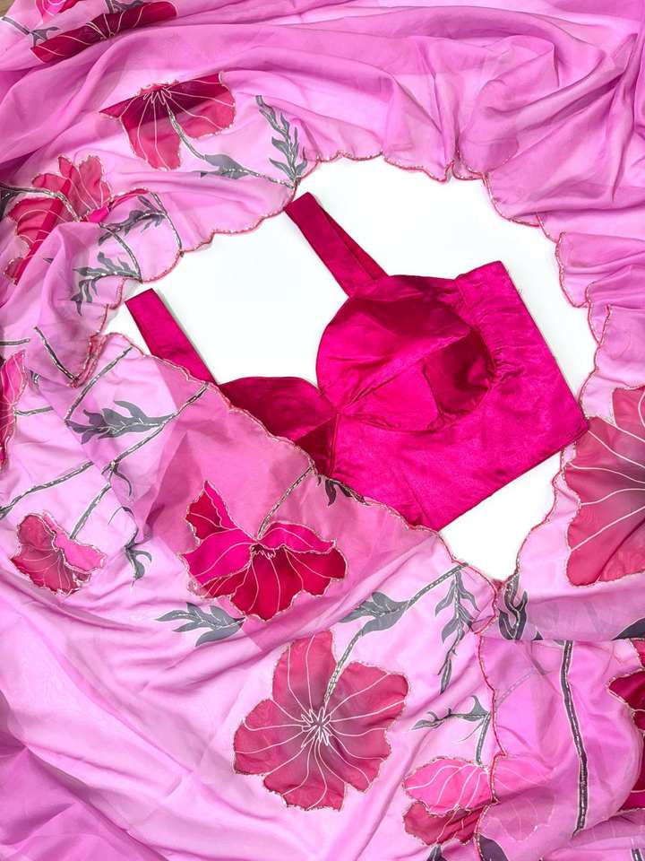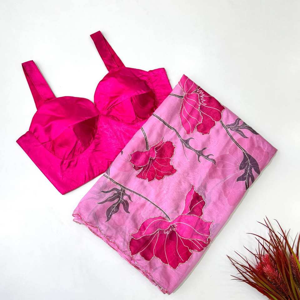 ชุดส่าหรีผ้าไหมแบบดั้งเดิมพร้อมพิมพ์ลายด้วยมือเสื้อแบบไม่มีตะเข็บดีไซน์เนอร์อินเดียและปากีสถานชุดต้อนรับงานปาร์ตี้