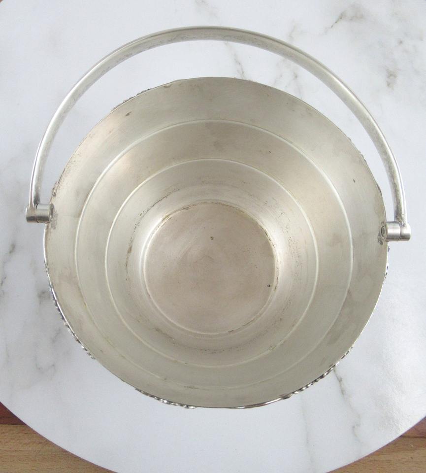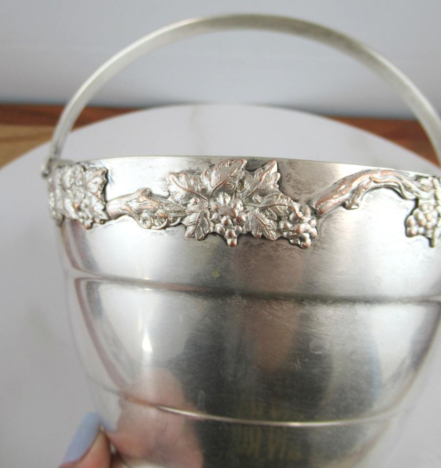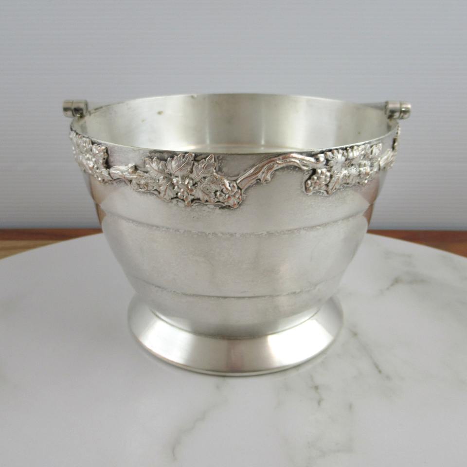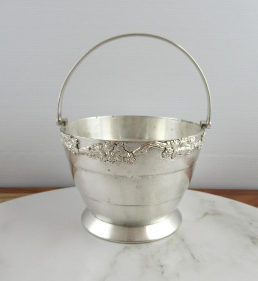 ถังน้ำแข็งเงินแบบดั้งเดิมพร้อมขอบลายดอกไม้ตกแต่ง เหมาะสำหรับบาร์คลาสสิก ใช้สำหรับจัดเลี้ยงและโชว์ ผลิตจากอินเดีย