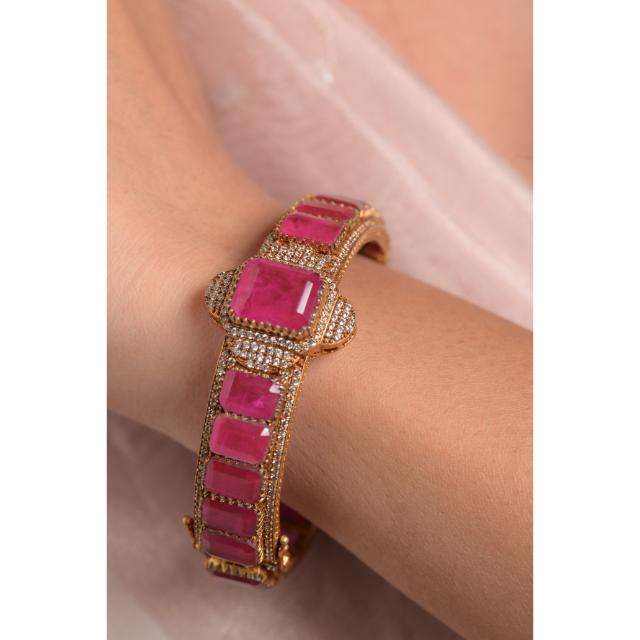 เครื่องประดับพลอยสีชมพูแบบดั้งเดิมสำหรับผู้หญิง เงินแท้ 925 กำไลข้อมือพลอยประจำเดือนเกิด ของขวัญพิเศษสำหรับเธอ