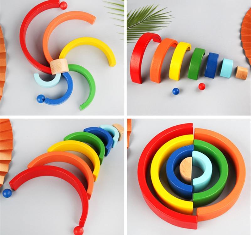 ตัวต่อไม้สีรุ้งขนาดเล็กแบบดั้งเดิมของเล่นเพื่อการศึกษาที่ทันสมัยสำหรับเด็กตัวอย่างฟรีสำหรับเกมขี้เล่น