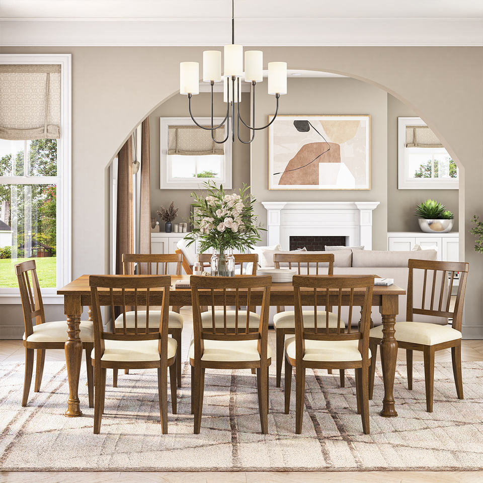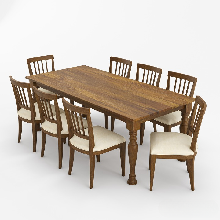 ชุดโต๊ะอาหารไม้สักแท้ ทนทาน เป็นมิตรกับสิ่งแวดล้อม สไตล์บ้านไร่ พร้อมเก้าอี้หุ้มเบาะ 8 ตัว เฟอร์นิเจอร์บ้านสไตล์โมเดิร์นแบบเรียบง่าย