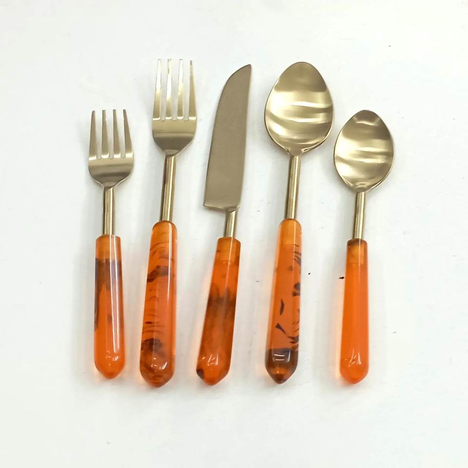 ชุดช้อนส้อมสแตนเลสแบบดั้งเดิมพร้อมเปลือกเต่ามือจับอะคริลิคสำหรับงานแต่งงานที่บ้านชุดเครื่องใช้บนโต๊ะอาหารสีเงิน