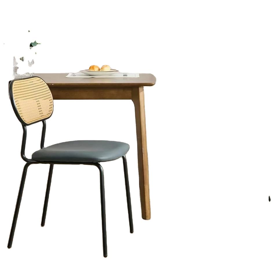 เก้าอี้ทานอาหารสแตนเลสแบบดั้งเดิม เบาะหุ้มหนัง PU พนักพิงหวาย ที่วางแขนเคลือบสีดำ สำหรับบ้านและโรงแรม