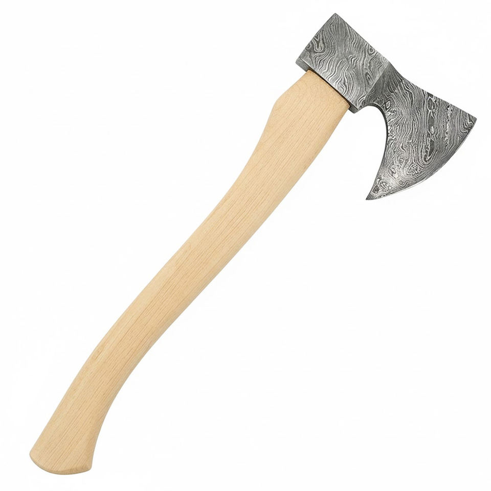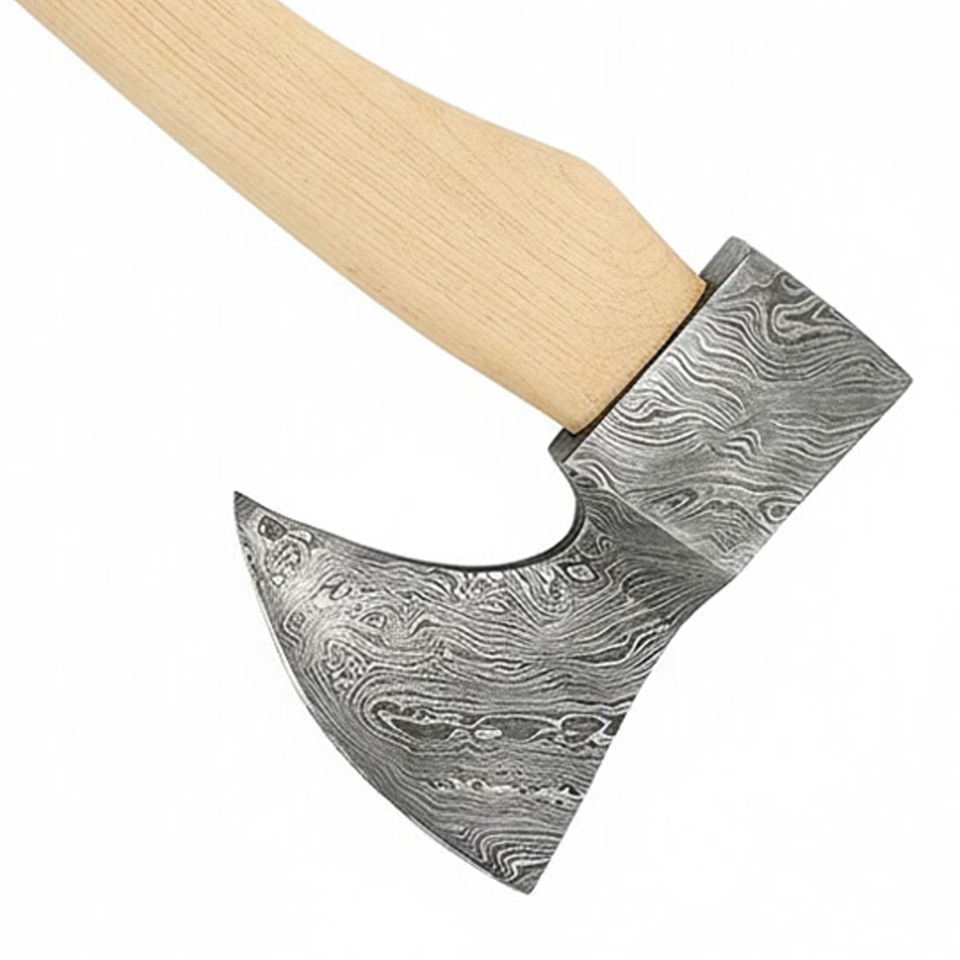 ขวานเหล็กดามัสกัสแบบดั้งเดิม ดีไซน์สมดุล ด้ามจับทนทาน สำหรับงานบุชคราฟต์ ผลิตโดยช่างฝีมือ