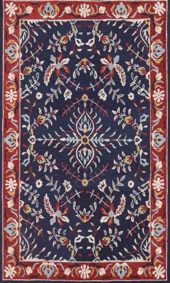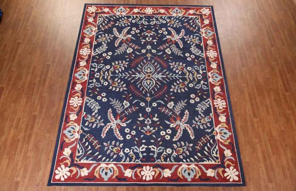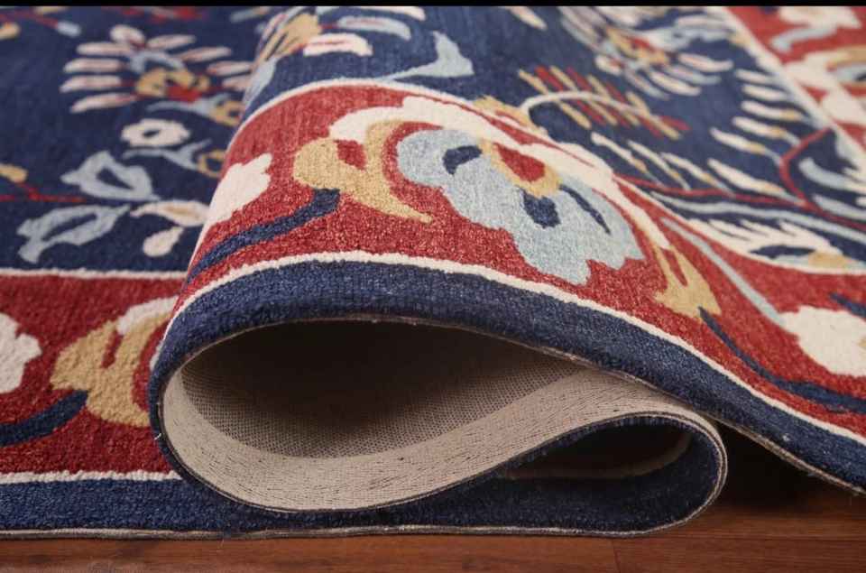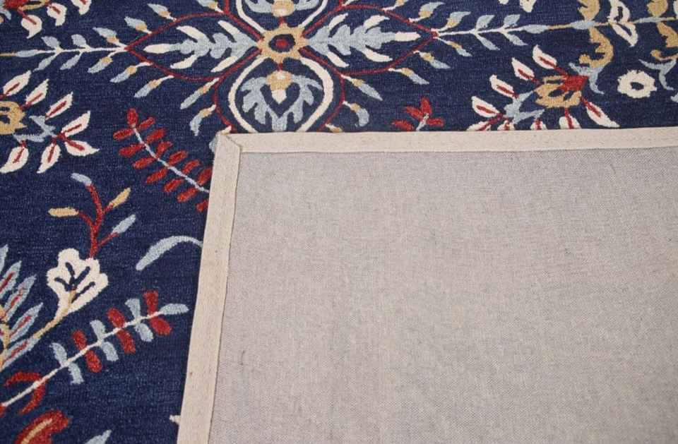 ชุดพรมลายดอกไม้ผ้าส่าหรีน้ำเงินเข้มแบบดั้งเดิมพรมทอมือที่เป็นมิตรกับสิ่งแวดล้อมกันลื่น