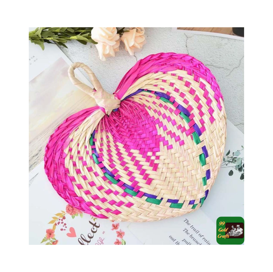 พัดมือทำจากไม้ไผ่และใบปาล์ม งานฝีมือพื้นบ้านแบบดั้งเดิม พร้อมลวดลายเพ้นท์สีสันตามสั่ง เป็นมิตรกับสิ่งแวดล้อม เหมาะสำหรับตกแต่งในช่วงเทศกาล