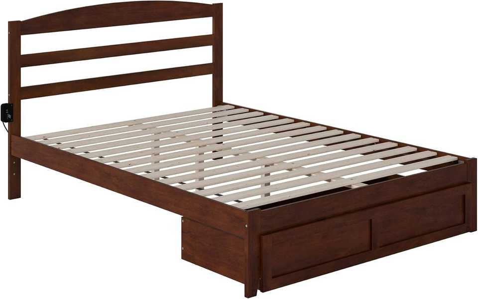 Traditional Style Pine Wood Panel Platform Bed with Foot Drawer and Charging Station Durable Bedroom Furniture TNT Brand