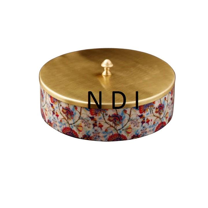 หม้อไม้สำหรับเสิร์ฟชาปาตี ฝาปิดโลหะเคลือบทองเงางามสไตล์ดั้งเดิม เหมาะสำหรับใช้ในบ้าน ร้านอาหาร และโรงแรม