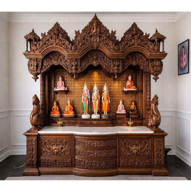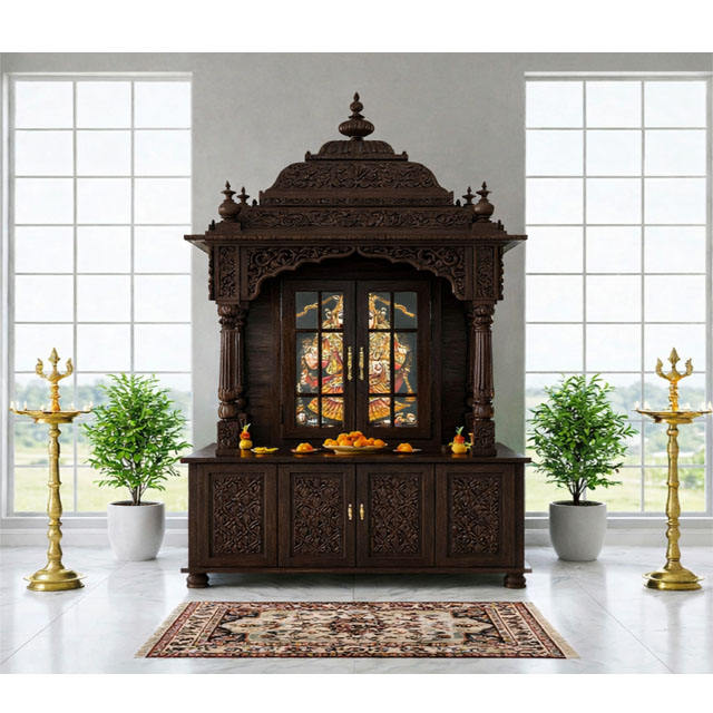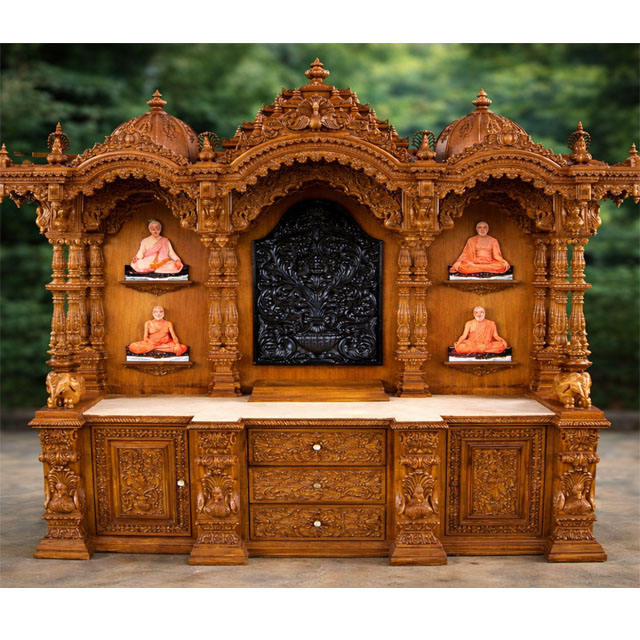 ตู้บูชาไม้สไตล์ดั้งเดิมสำหรับบ้าน ขนาดใหญ่ แกะสลักด้วยมือจากไม้สัก สำหรับบูชาแบบฮินดู วัดปูจา สไตล์แคลิฟอร์เนีย