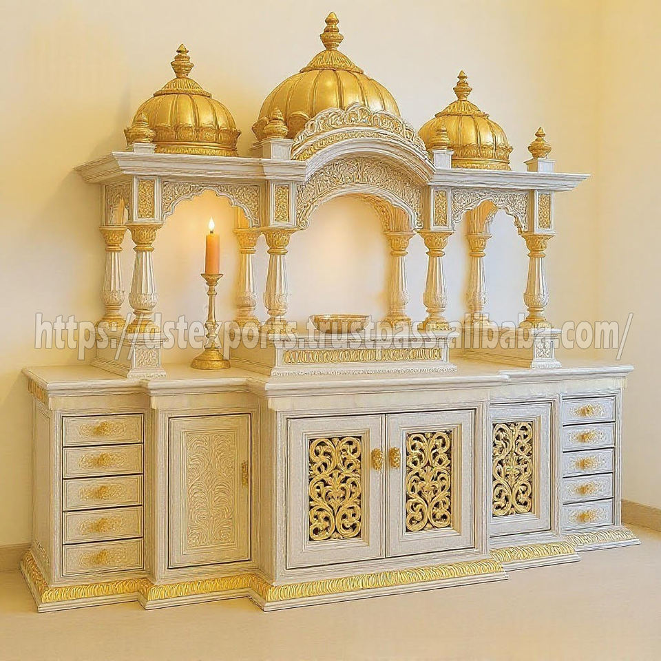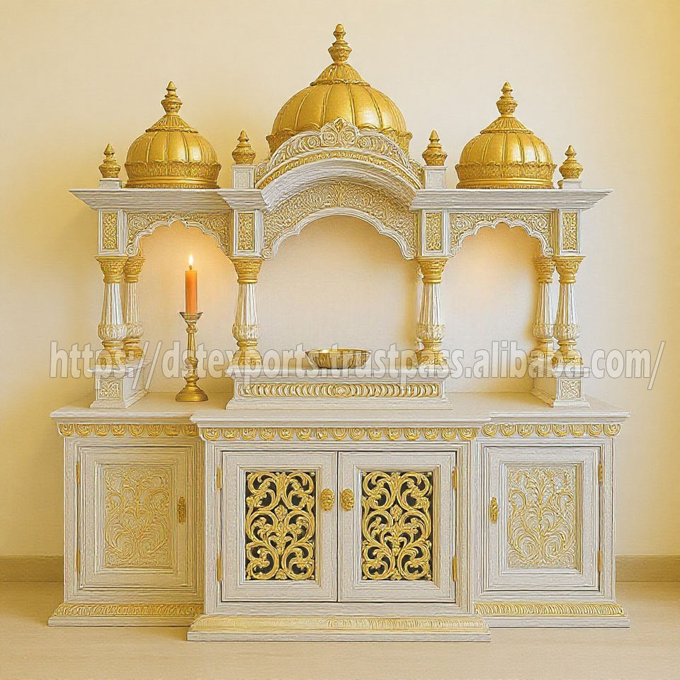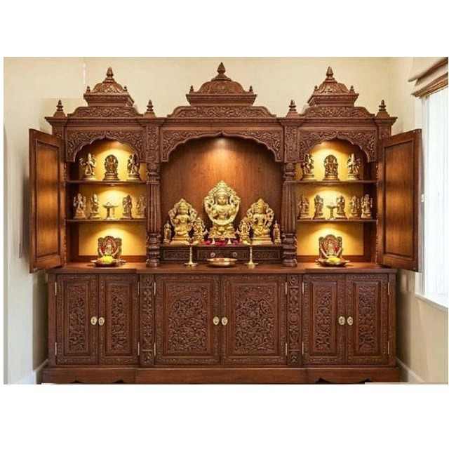 ตู้บูชาไม้สไตล์ดั้งเดิมสำหรับบ้าน ขนาดสั่งทำได้ แกะสลักด้วยมือจากไม้สัก สำหรับพิธีกรรมฮินดู แบบถอดประกอบได้