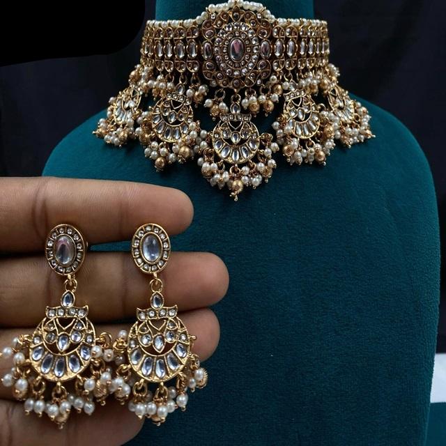 ชุดโชคเกอร์ประดับเพชรพรีเมี่ยมแบบดั้งเดิมพร้อมต่างหูหินที่มีคุณภาพสูงสวมใส่ในงานแต่งงานสำหรับผู้หญิง