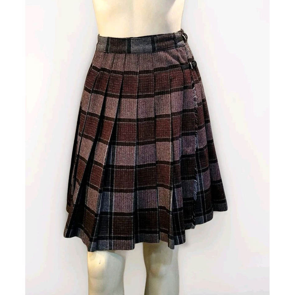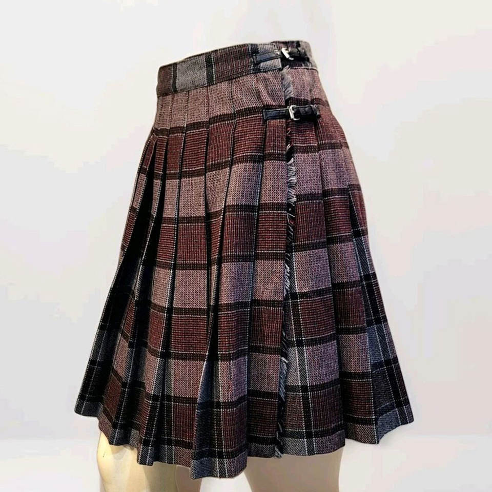 กระโปรงผ้าขนสัตว์ลายสก็อตแบบดั้งเดิมสำหรับเด็กผู้หญิง สายรัดปรับระดับได้พร้อมหัวเข็มขัดหนัง ขายส่ง