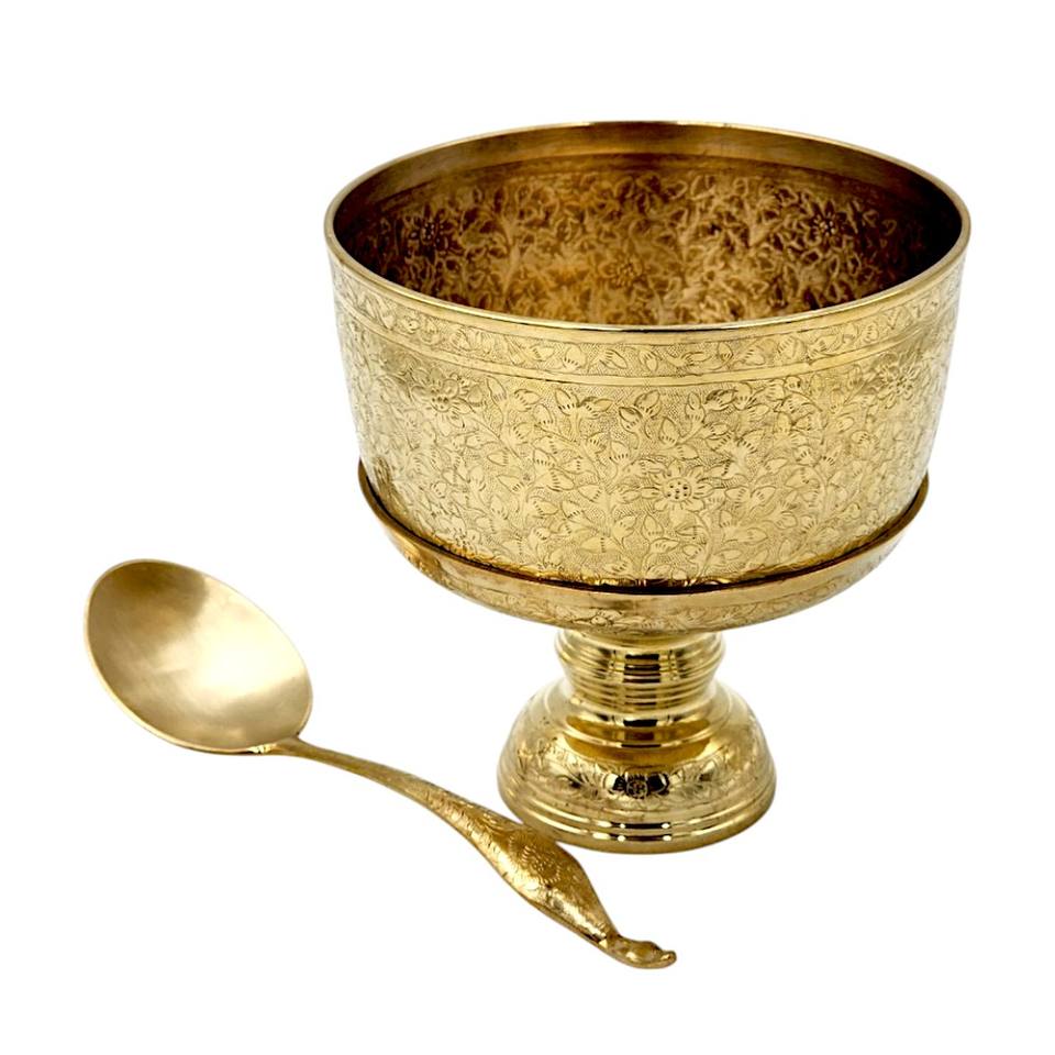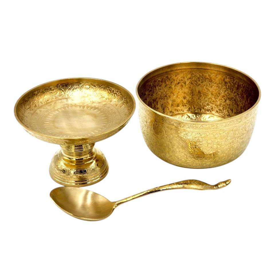 ประเภทสินค้า:ชามทองเหลืองแบบไทยดั้งเดิมพร้อมสลักเป็นฐาน