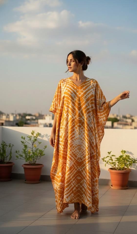 ชุดเดรสยาวคอวีผ้าฝ้ายพิมพ์ลายมัดย้อมแบบดั้งเดิม ทำมือ เป็นมิตรกับสิ่งแวดล้อม ทรงหลวม เอวไม่รัดรูป เหมาะสำหรับใส่ไปเที่ยวชายหาด สไตล์ลำลองสำหรับผู้หญิง