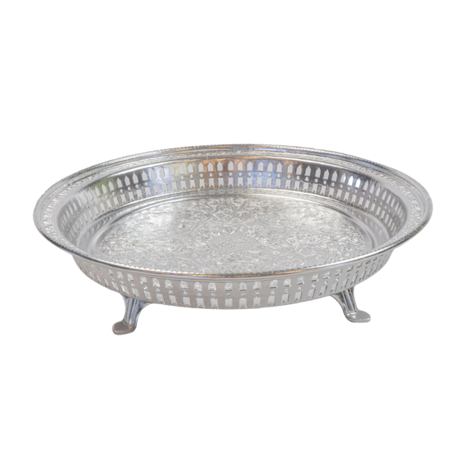 ถาดเสิร์ฟแบบดั้งเดิมถาดราตานาโกซินสไตล์ไทยพร้อมขา20ซม. วัสดุอลูมิเนียมสีเงินผลิตในประเทศไทย