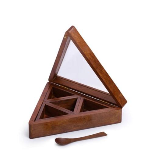 กล่องใส่เครื่องเทศมาซาลาในครัว,ดีไซน์ทรงสามเหลี่ยมแบบดั้งเดิมทำจากไม้พร้อมช่องใส่ของที่ดีที่สุดราคาถูกสำหรับบ้านร้านอาหารโรงแรม