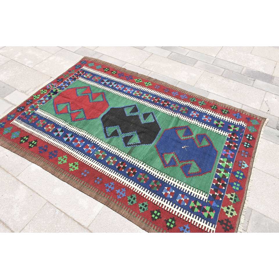 พรมขนแกะสีเขียวขุ่นแบบดั้งเดิมพื้นที่กว้าง4'1 "x 6 'สี่เหลี่ยมผืนผ้าปะติดโถงทางเดินสีแดง10มม. สำหรับห้อง