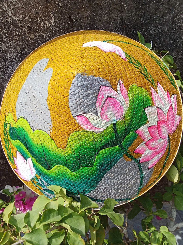 หมวกทรงกรวยทำจากใบปาล์มไม้ไผ่แบบดั้งเดิมของเวียดนาม ทำด้วยมือสำหรับกิจกรรมกลางแจ้ง ป้องกันแสงแดด และการเดินทาง