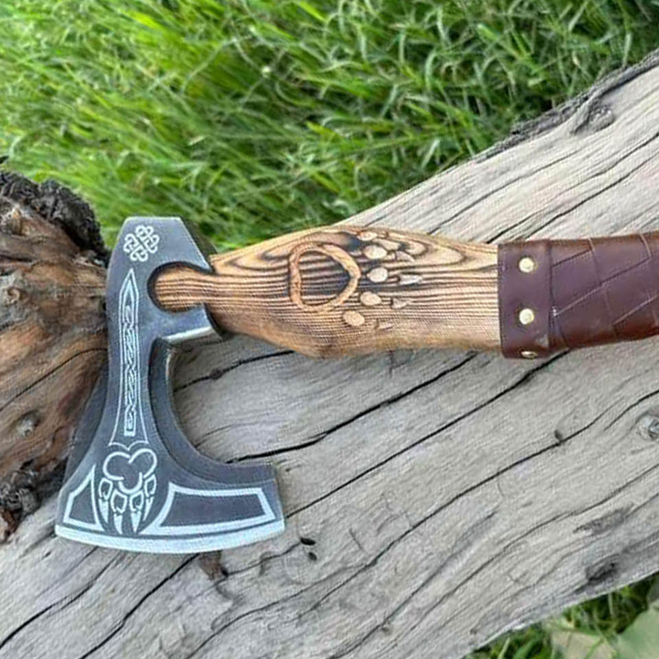 ขวานสไตล์ไวกิ้งแบบดั้งเดิม ใบมีดเหล็กคาร์บอน ด้ามไม้ สำหรับตั้งแคมป์ ทำกิจกรรมกลางแจ้ง งานไม้ แรงบันดาลใจจากนอร์ดิก