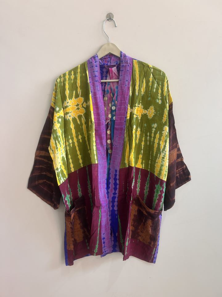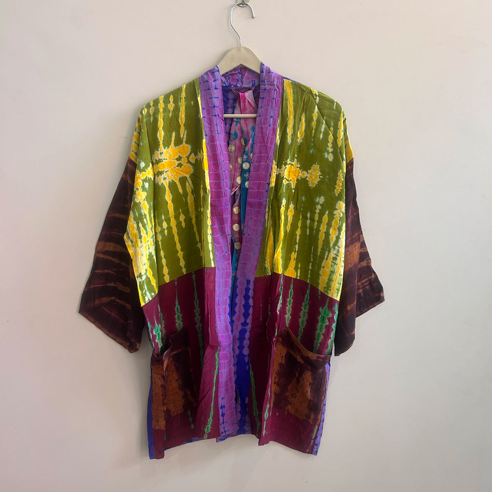 ชุดกิโมโนผ้าไหมทำมือสไตล์วินเทจสำหรับผู้หญิง ชุดคลุมฤดูร้อน